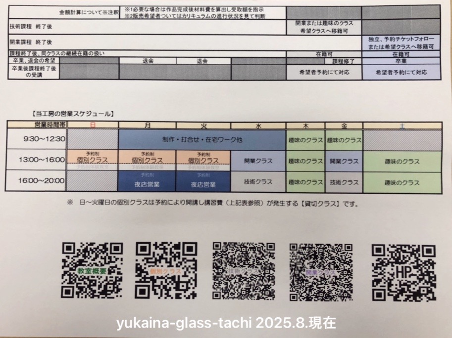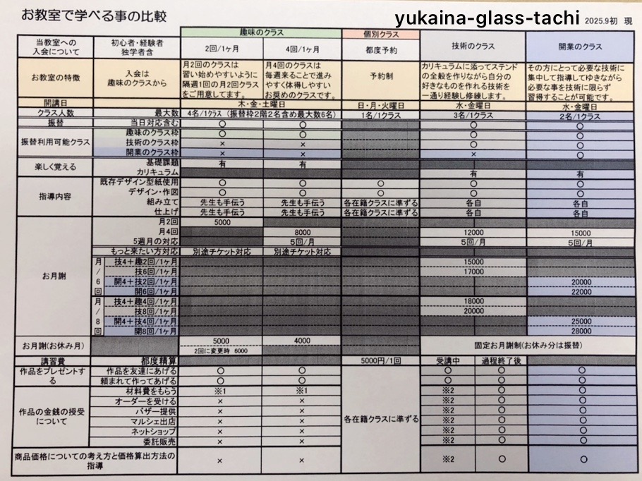 〝★技術、開業のクラスにつきましては、当工房で初めて始めた方は3年~、以前ステンドを経験したことのある方は検討させて頂ただき時期を決めさせて頂きます。