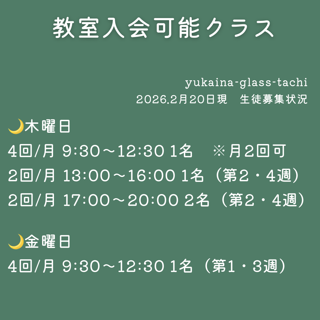 只今の入会可能クラス 2026.2.20.現在